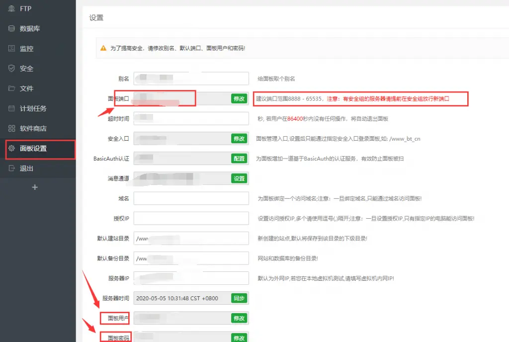6.为安全起见,建议修改你的用户名和密码,以及面板默认端口。