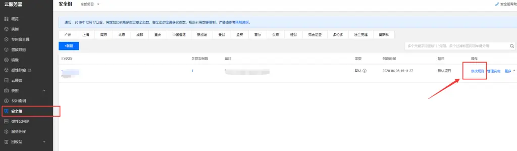 注意:修改面板端口之前,记得在你的阿里云或者腾讯云控制台,找到你的云服务器,在“安全组”一栏下修改规则,选择入站规则下的“添加规则”。