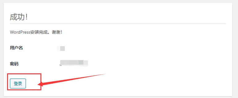 10. 安装完成后,登陆你的Wordpress管理后台。(后台登陆地址为:你的网址或ip/wp-admin)