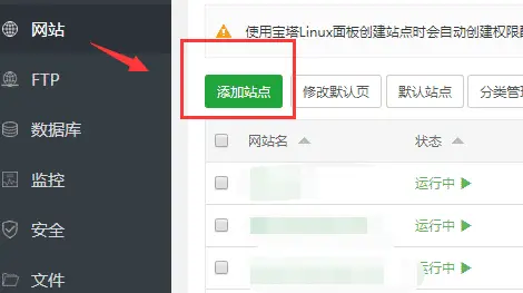 12.最后,如何在宝塔面板管理添加站点呢?点击左侧“网站”,选择右边的“添加站点”。接着在弹出的窗口里,填写好你的新站点信息即可。(如果只是部署静态网站的话,就不需要创建数据库)