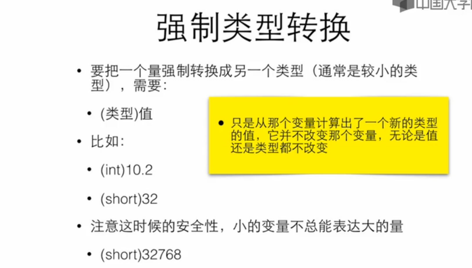 | 2 | (类型) | 强制类型转换符 | 1(单目运算符) | 自右向左 |