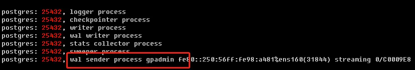 Primary节点和Mirror节点上的wal sender和wal receiver进程可以通过ps命令看到