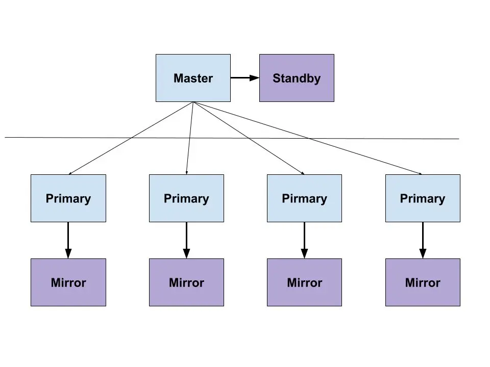 综上,对于一个高可用的greenplum集群,master节点会对应备份的standby节点,每个primary子节点会有与之对应的mirror子节点。目前的greenplum只支持一主一从,暂时不支持一主多从。