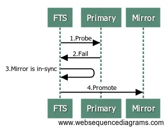 这是最常见,也是高可用解决的最主要的问题。一旦FTS发现某个primary已经宕机,此时,如果Mirror是同步的,则将把对应的Mirror Promote成primary,并更新catalog。