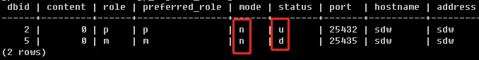 可以看到catalog表的变化,mode已经变成不同步,mirror的状态也标记成down。