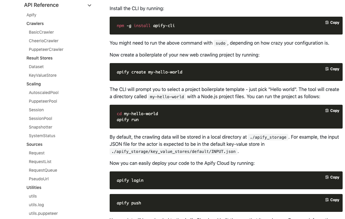 apify是一款用于JavaScript的可伸缩的web爬虫库。能通过无头(headless)Chrome 和 Puppeteer 实现数据提取和** Web** 自动化作业的开发。 它提供了管理和自动扩展无头Chrome / Puppeteer实例池的工具,支持维护目标URL的请求队列,并可将爬取结果存储到本地文件系统或云端。