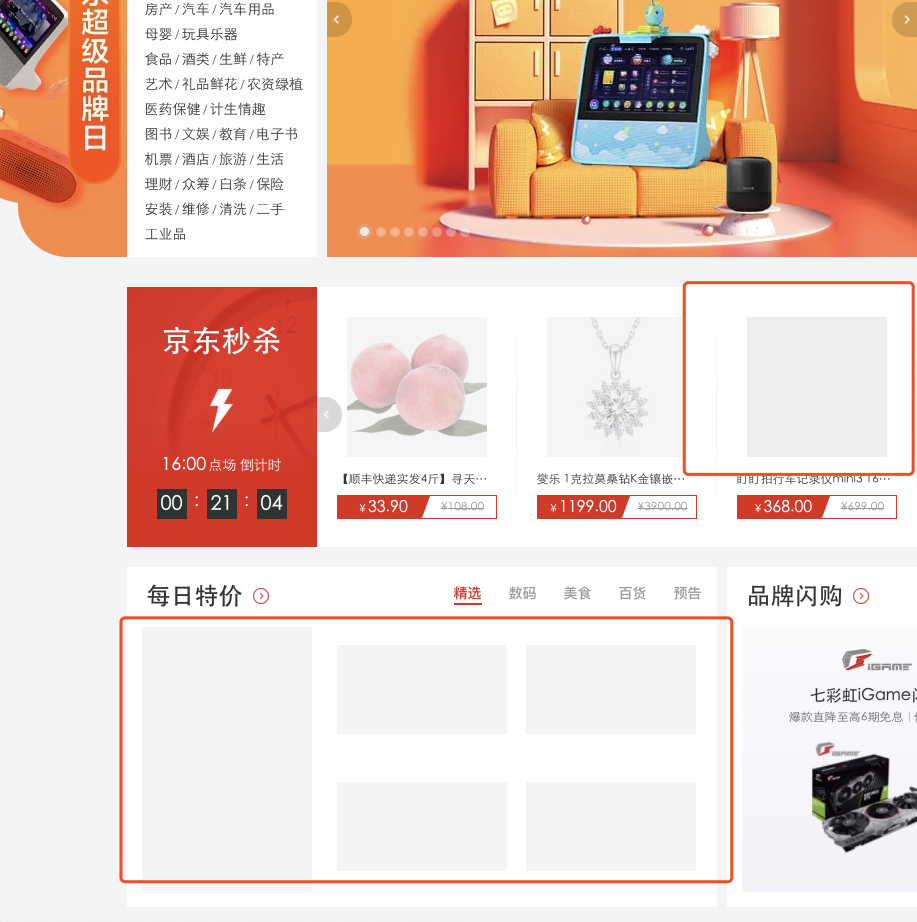 我们都知道puppeteer截取网页图片只会截取加载完成的部分,对于一般的静态网站来说完全没有问题, 但是对于页面内容比较多的内容型或者电商网站, 基本上都采用了按需加载的模式, 所以一般手段截取下来的只是一部分页面, 或者截取的是图片还没加载出来的占位符,如下图所示: