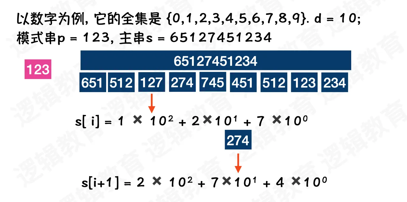 将两个字符串的比较转为两个数字的比较,这是 RK 算法的亮点。