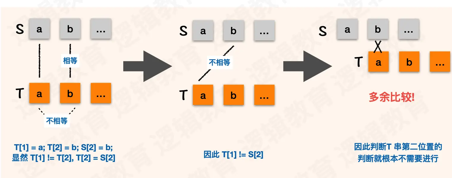 从图①中我们已经得知了 s[2]!=t[1]了,那这里还比个毛线啊比,所以第二步可以跳过了。
