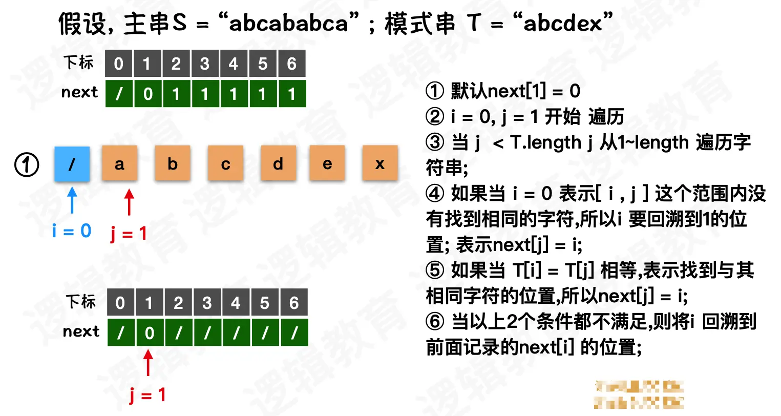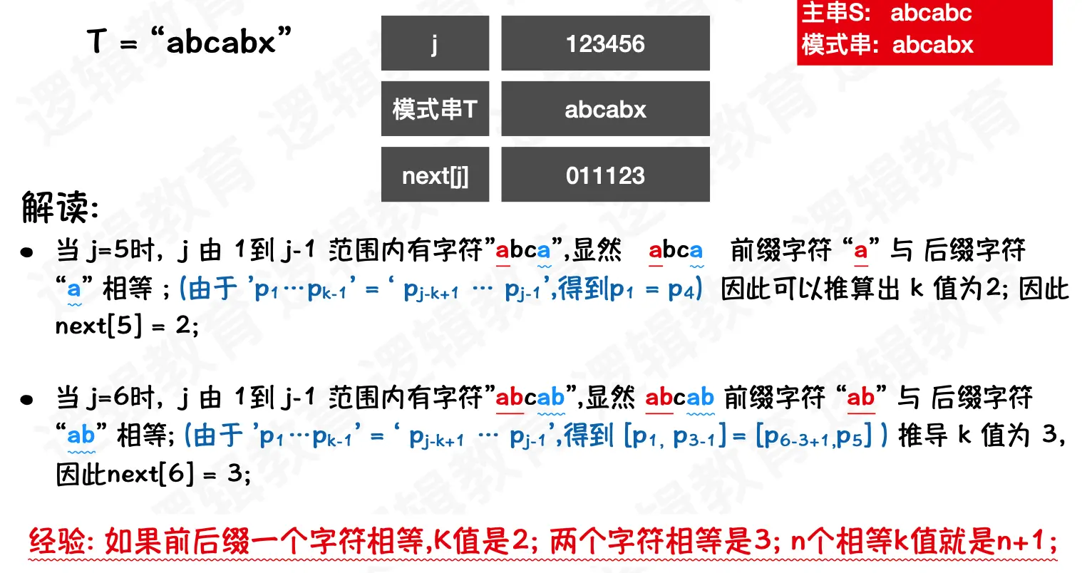 KMP 算法,而是根据模式串t求出上述的next 数组,整个算法逻辑和主串 s没有关系。