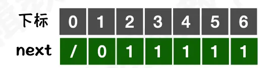 按照这个流程就能得出 next 数组: