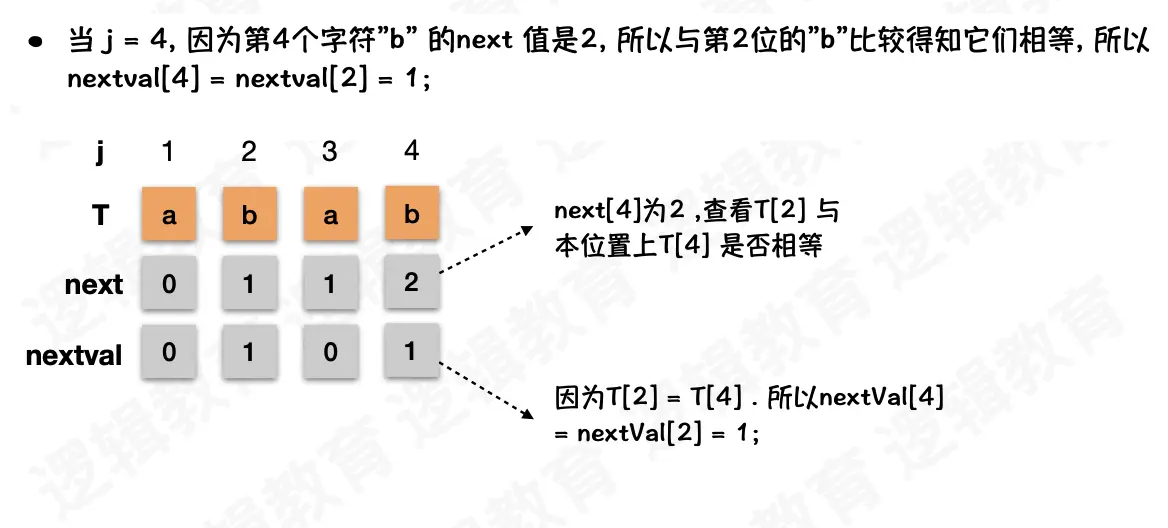 我们将经过这样优化的 next 数组记为 nextval 数组,他是对 next 数组的优化,你不这样做 KMP 算法也已经很优秀了嗷,当然你优化了它会更优秀😊!