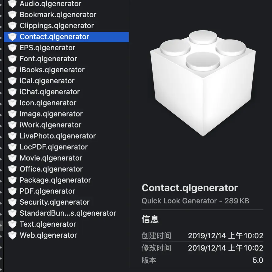 QuickLook采用的是可扩展架,大部分工作都是由插件来完成。插件后缀名为.qlgenerator,是不是很好记!ql是QuickLook的缩写。generator创造者,直白翻译过来就是QuickLook实现插件!