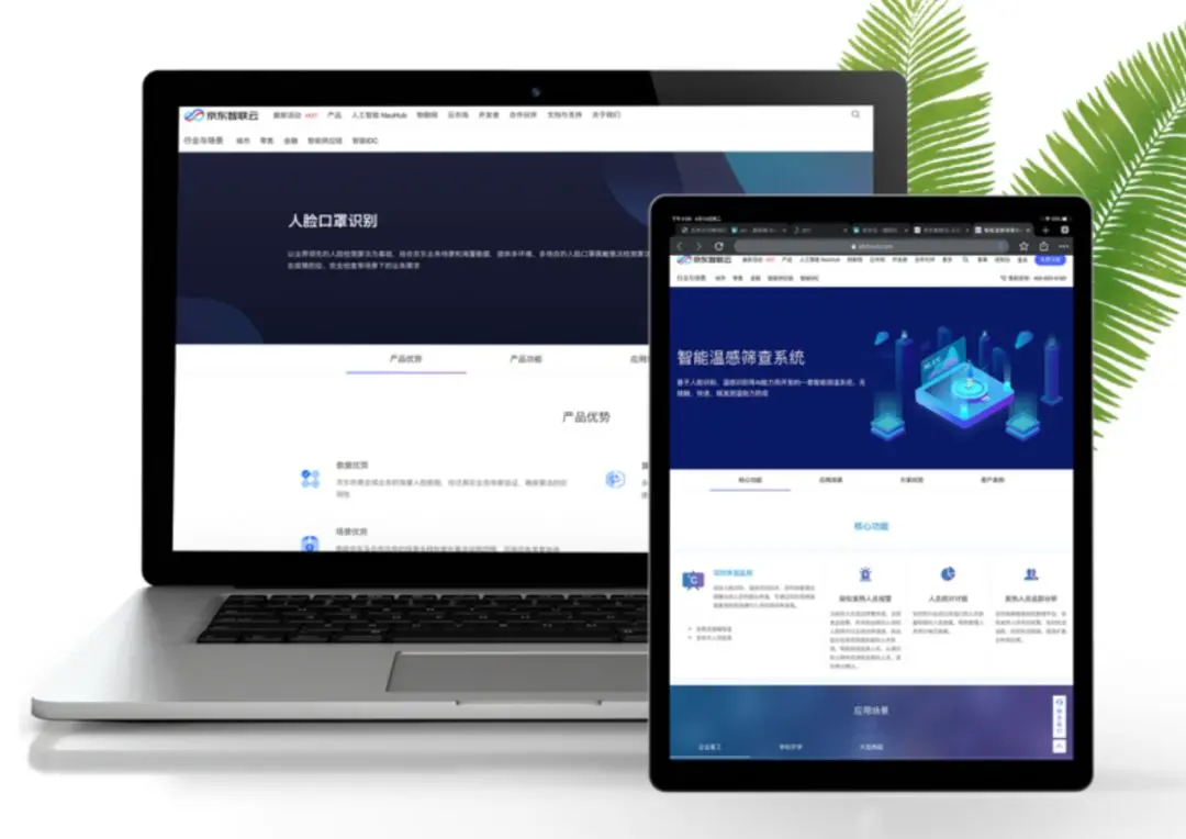 目前,完善的模型已经部署到京东智联云。在京东智联云的官网,人脸口罩识别(口罩佩戴检测)、京东智能温感筛查系统已经上线。