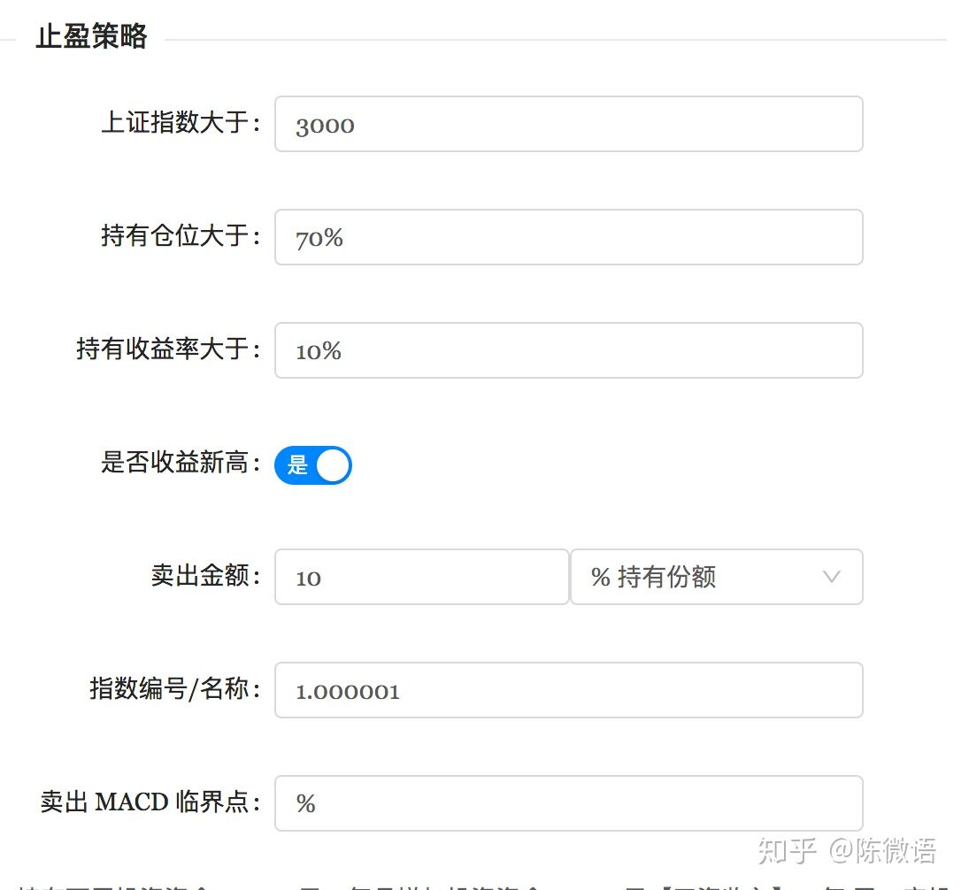 - 持有收益达到百分之多少就止盈,