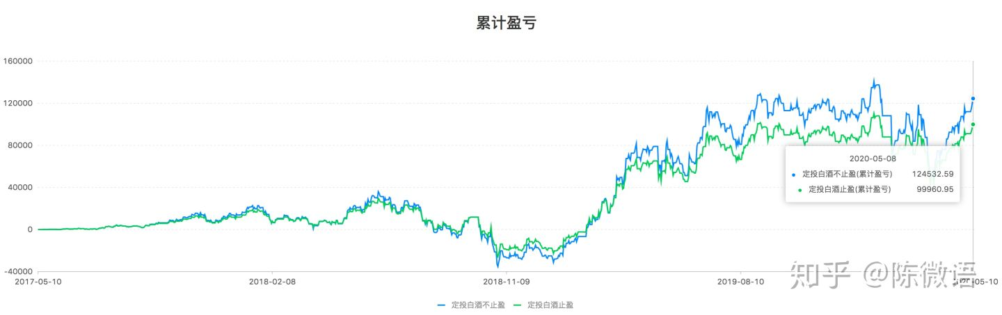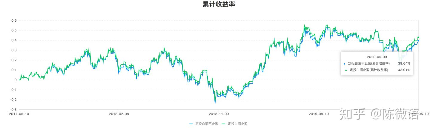 举个栗子,定投招商中证白酒3年,止盈和不止盈的差别是什么?请看数据: