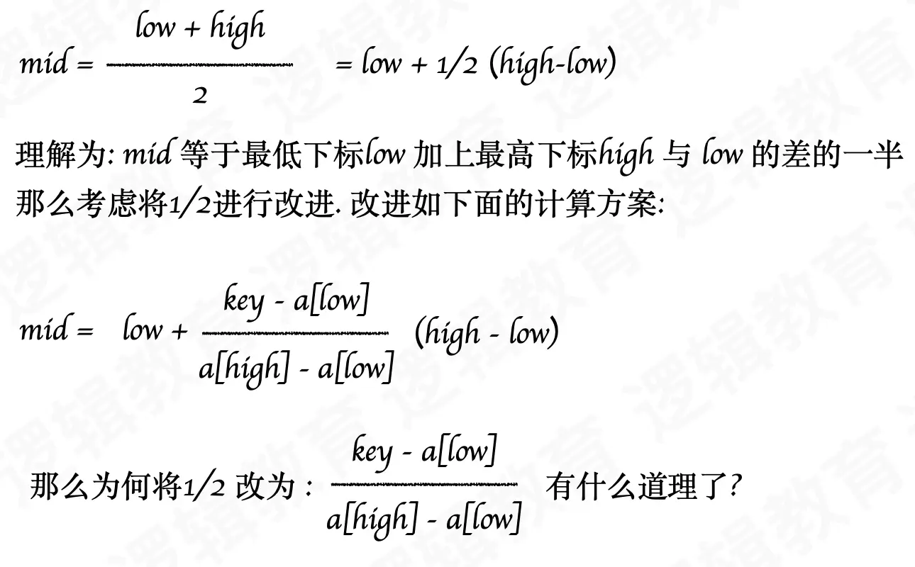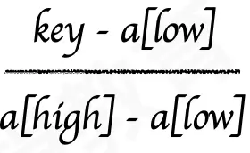 mid = low+ (high-low)*(key-a[low])/(a[high]-a[low]);