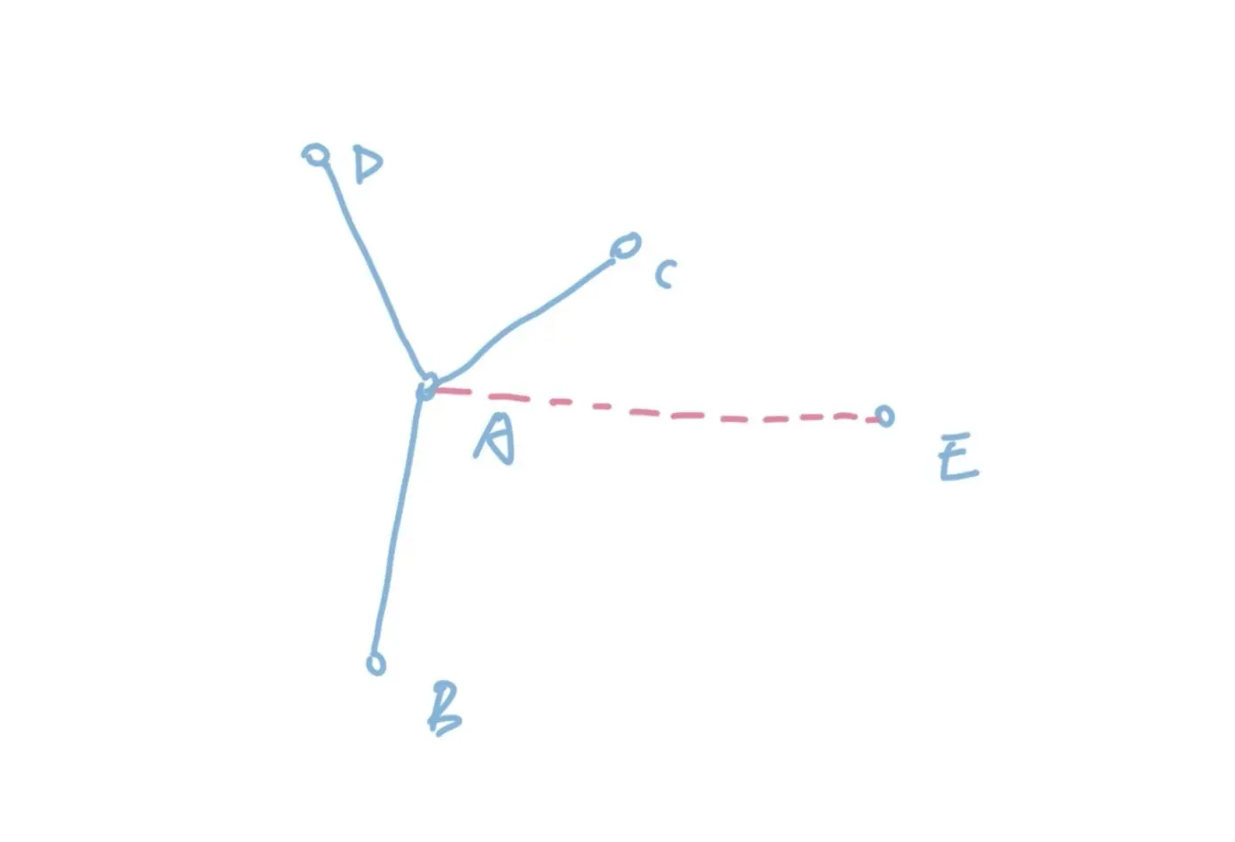 在图中,我们左边是一棵已经构成的树,当我们连通AE之后,我们就用边覆盖了E点。点是依托于边的,不通过边,是无法覆盖点的。
