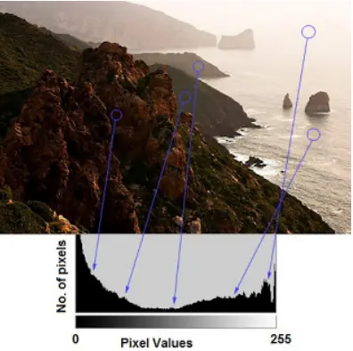 内容来自OpenCV-Python Tutorials 自己翻译整理 目标: 使用opencv或numpy或Matplotlib函数绘制直方图 学习函数cv2.calcHist(),np.histogram() 原理: 通过直方图可以对图像灰度分布有一个整体了解,x轴上是灰度值(0到255),y轴是图片中该灰度值的像素点的数目。 通过图像可以对图片对比度、亮度、灰度分布有一个直观的认识,如下图: 直方图左侧区域是暗一点的像素数目,右侧为亮一点的像素数目 相关术语: BINS: 在上面的直方图当中,如果像素值是0到255,则需要256个值来显示直方图。但是,如果不需要知道每个像素值的像素数目,值想知道两个像素值之间的像素点数目怎么办?例如,想知道像素值在0到15之间的像素点数目,然后是16到31。。。240到255。可以将256个值分成16份,每份计算综合。每个分成的小组就是一个BIN(箱)。在opencv中使用histSize表示BINS。 DIMS: 数据的参数数目。当前例子当中,对收集到的数据只考虑灰度值,所以该值为1。 RANGE: 灰度值范围,通常是[0,256],也就是灰度所有的取值范围。 使用opencv统计直方图: 使用 cv2.calcHist函数完成 参数如下 cv2.calcHist(images, channels, mask, histSize, ranges[, hist[, accumulate]]) - images参数,原图像(格式为uint8或float32)。图像传入时应当用[]括起来,[img]