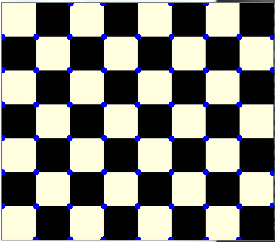 将获得到的角点按照角点“质量”降序排列。将质量最高的角点排在第一位,然后过滤掉它周围minDistance之内的角点。以此类推 from matplotlib import pyplot as plt img = cv2.imread('2.jpg') gray = cv2.cvtColor(img,cv2.COLOR_BGR2GRAY) corners = cv2.goodFeaturesToTrack(gray,72,0.01,10)#棋盘上的所有点 corners = np.int0(corners) cv2.circle(img,(x,y),10,255,-1)#在原图像上画出角点位置