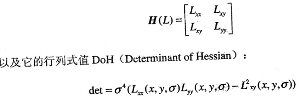如何求得<span class="MathJax" id="MathJax-Element-103-Frame" tabindex="0" data-mathml="p(i,j)" role="presentation" style="box-sizing: border-box; outline: 0px; display: inline; line-height: normal; text-align: left; word-spacing: normal; word-wrap: normal; white-space: nowrap; float: none; direction: ltr; max-width: none; max-height: none; min-width: 0px; min-height: 0px; border: 0px; word-break: break-all; position: relative;">p(i,j)p(i,j)? 递推公式为,<span class="MathJax" id="MathJax-Element-104-Frame" tabindex="0" data-mathml="p(i,j)=p(i−1,j)+p(i,j−1)+I(i,j)−p(i−1,j−1)" role="presentation" style="box-sizing: border-box; outline: 0px; display: inline; line-height: normal; text-align: left; word-spacing: normal; word-wrap: normal; white-space: nowrap; float: none; direction: ltr; max-width: none; max-height: none; min-width: 0px; min-height: 0px; border: 0px; word-break: break-all; position: relative;">p(i,j)=p(i−1,j)+p(i,j−1)+I(i,j)−p(i−1,j−1)p(i,j)=p(i−1,j)+p(i,j−1)+I(i,j)−p(i−1,j−1),这里面<span class="MathJax" id="MathJax-Element-105-Frame" tabindex="0" data-mathml="I(i,j)" role="presentation" style="box-sizing: border-box; outline: 0px; display: inline; line-height: normal; text-align: left; word-spacing: normal; word-wrap: normal; white-space: nowrap; float: none; direction: ltr; max-width: none; max-height: none; min-width: 0px; min-height: 0px; border: 0px; word-break: break-all; position: relative;">I(i,j)I(i,j)表示像素点<span class="MathJax" id="MathJax-Element-106-Frame" tabindex="0" data-mathml="(i,j)" role="presentation" style="box-sizing: border-box; outline: 0px; display: inline; line-height: normal; text-align: left; word-spacing: normal; word-wrap: normal; white-space: nowrap; float: none; direction: ltr; max-width: none; max-height: none; min-width: 0px; min-height: 0px; border: 0px; word-break: break-all; position: relative;">(i,j)(i,j)处的像素值。 文中提到的Hessian矩阵,学过数学分析、最优化、机器学习之类的人肯定对这玩意非常熟悉,实际上黑塞矩阵就是一个多元函数的二阶偏导数构成的方阵,它的行列式值(Determinant of Hessian )可以反映的局部结构信息,简称DOH。与LOG类似,DOH可以使用不同方差生成高斯函数对各个元的二阶偏导模板,以此来对图像进行卷积运算。 同样,DOH也会在卷积后的函数中,得到对图像信号斑点极值的响应。如图