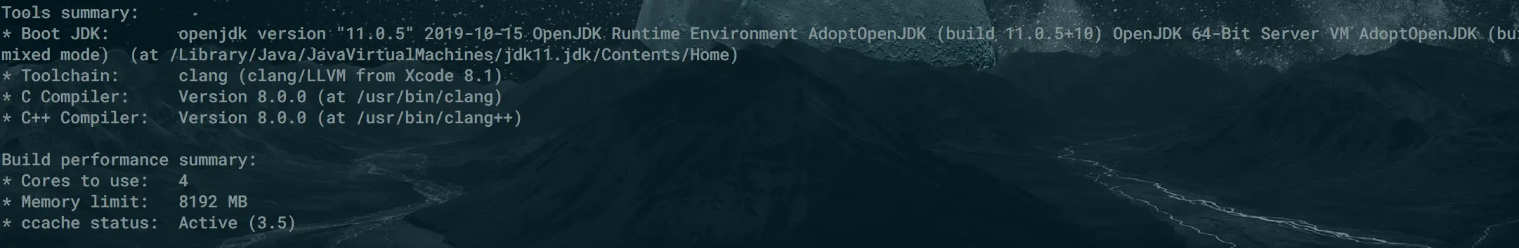 本次编译环境 macOS 10.12,编译的是 JDK 11 版本。