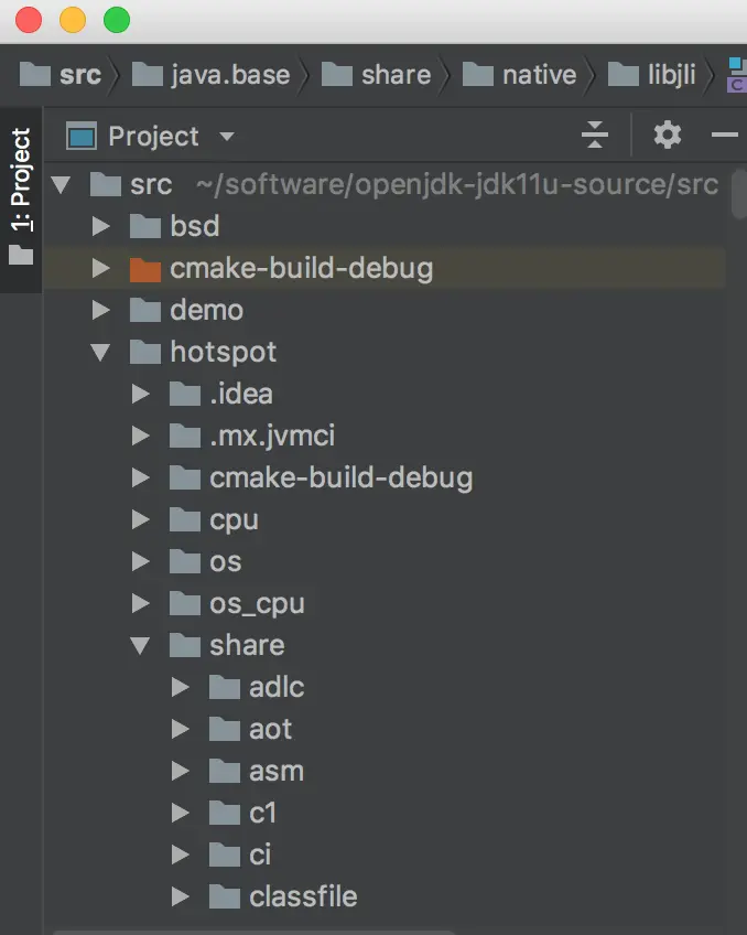 编译好之后,会在当前目录出现 build 目录,进去之后,看到有个 macosx-x86_64-normal-server-slowdebug 就是最终的目录。