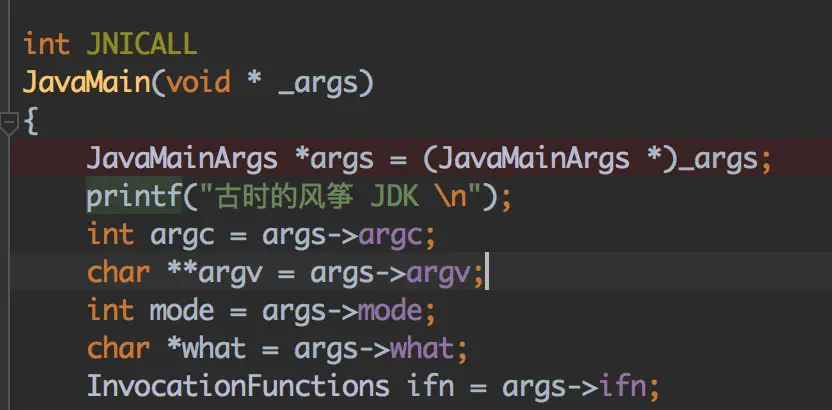 我在打开的 CLion 中找到了 java.c 文件的 JavaMain(void * _args) 方法,在里面加了一行打印代码,就勉强算实现了自己的 JDK 吧(微笑脸)。