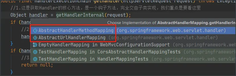 第一步是根据HandlerMapping获取``Handler,但实际上这里返回的HanlderExecutionChain,HandlerExecutionChain里面封装了Hanlder和HandlerInterceptor,所以说本质上和Handler`是差不多的。