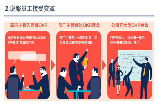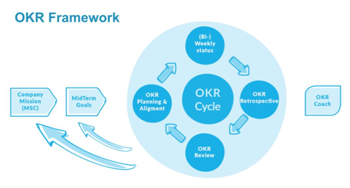 首先让我们来看看OKR的框架图,发现和什么很像了吗?没错,和Scrum的框架图很像。从产品待办列表拆出Sprint待办列表,然后流入Sprint的循环中,不断检视与调整,环环相扣,而那个OKR Coach像不像我们的Scrum Master。
