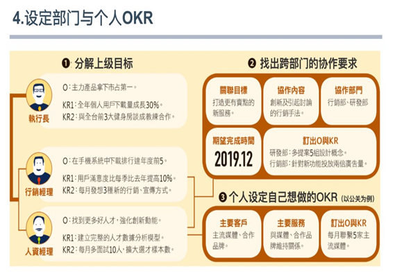 对于团队OKR,目标是特性需求(Feature),关键结果是“版本标准”,回答了用户故事的What。对于个人OKR而言,目标是用户故事(User Stoy),关键结果是“验收标准”,回答了用户故事的How。