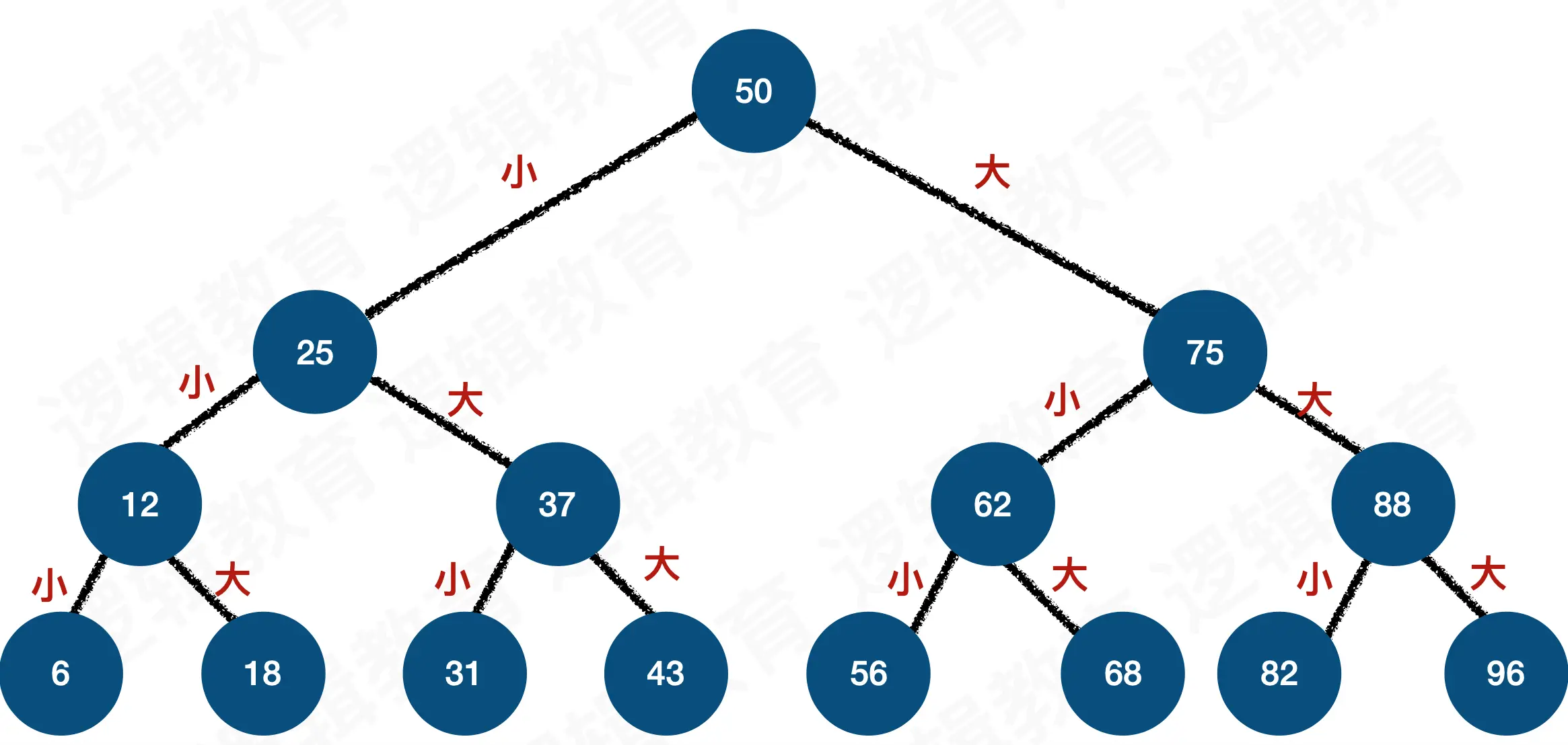 - 没有数据则根据大小判断插入为左孩子或者右孩子。