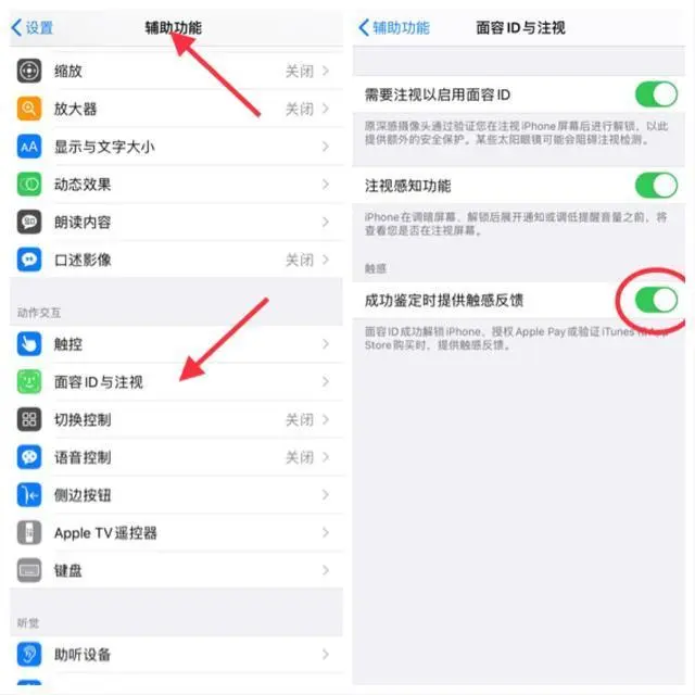 大家都知道,苹果是很注重用户基础体验的,从其配备的手机圈最大的震动马达就可看出,同时为了发挥马达的全部实力,iOS13为其进行了多个场景的适配,甚至在一些细微领域也能感受到它。比如说它辅助功能中的震动反馈就能给予一些需要关爱的人帮助,但其实这些功能对于普通用户来说也是比较好用的。比如它面容ID与注视中的振动反馈功能,只需点击辅助功能-面容ID与注视,然后将“成功鉴定时提供触感反馈”功能开启,就能享受解锁时、下载APP时得到及时的反馈。