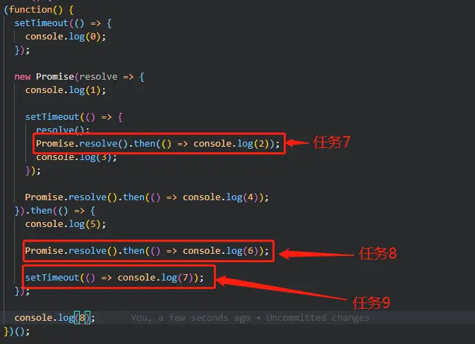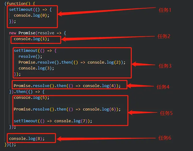 - 任务5 ------> 先打印5,将任务8扔进微任务,任务9扔进宏任务队列