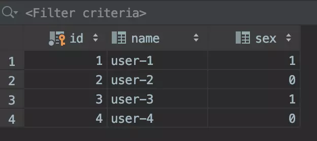 接下来我们编写数据库查询然后返回我们在数据库中的数据,为了演示这个功能我在数据库中先创建了一张表并且初始化了一些数据。它们看上去是这个样子的: