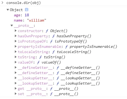 在我们没有对 obj 进行任何其他操作之前,发现 obj 已经有几个属性了: