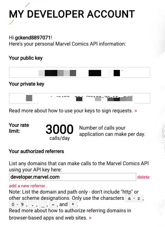 访问下面的链接注册一个漫威开发者