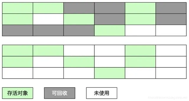 缺点:可用的内存大小缩小为原来的一半,对象存活率高时会频繁进行复制。