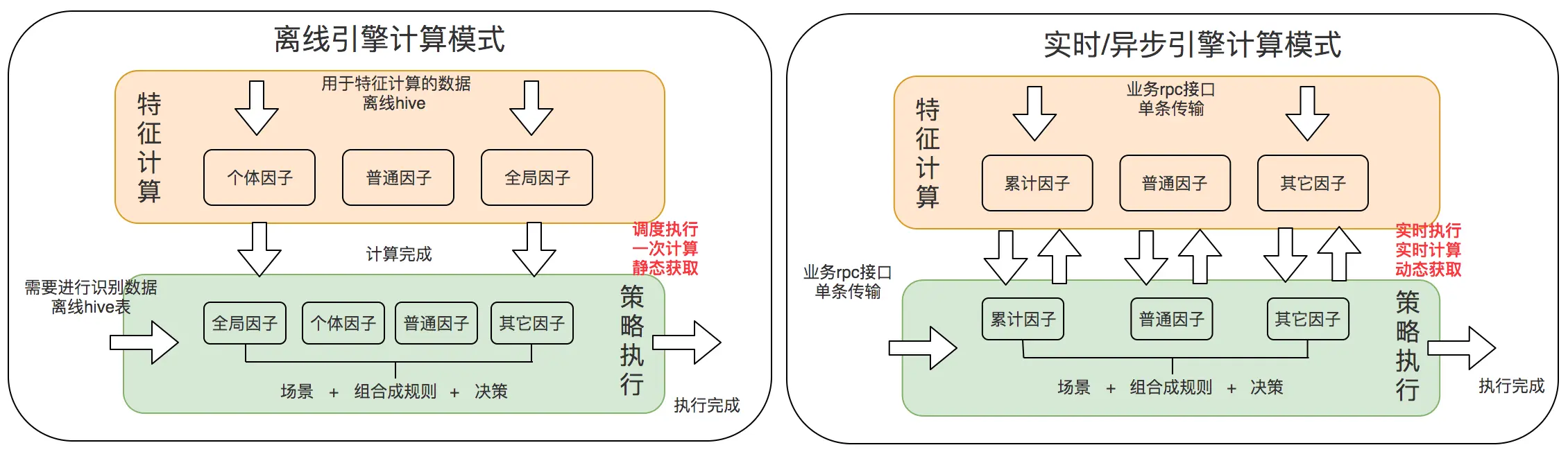 一些长时间周期特征无法快速应用的问题,例如近一年的时间周期。如何将离线引擎和实时引擎在特征计算上组合,实现特征的快速生产、验证和应用,从而扩展引擎的计算能力范围、提升风控业务的对抗效率。