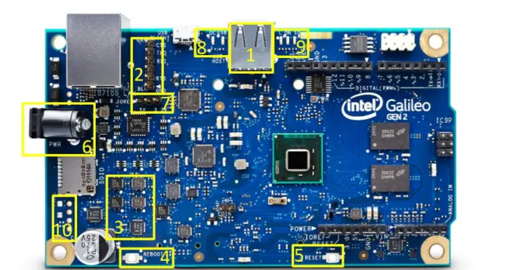对于上述几款开发板的性能进行了简单的对比,Arduino UNO,该类开发板最为普通,功能较少,如无法实现插入SD卡进行扩展等,但时价格最便宜,仅需十几元;Arduino101/Intel Curie该开发板比较容易出现复位问题,价格较高,但是运算性能强大,对于Arduino Micro开发板,其底层编写容易出问题,但是尺寸最小,可做模拟键鼠;Arduino Ethernet 专注以太网,接口加网线长距离稳定,加tf卡可以储存更多资源。初始化速度比较慢,影响开发速度。Intel Galileo Gen 2代是一款功能比较强大的软件,下面对其简要介绍,Intel Galileo Gen 2代开发板兼容Arduino,具有一个32位处理器,可以将信息保存到SD卡进行记录,实现扩容,可与互联网收集的数据实现通信,具有USB主机连接器,可以使用网络摄像头,同时具有以太网接口,可以实现网线连接搭建局域网,同时具有低功耗的特点。工作电压为7-15V。具有14个数据引脚0-13(其中3、5、6、9、10、11可用于PWM输出),5个模拟引脚包括A0-A5,同时还具有其他接口。