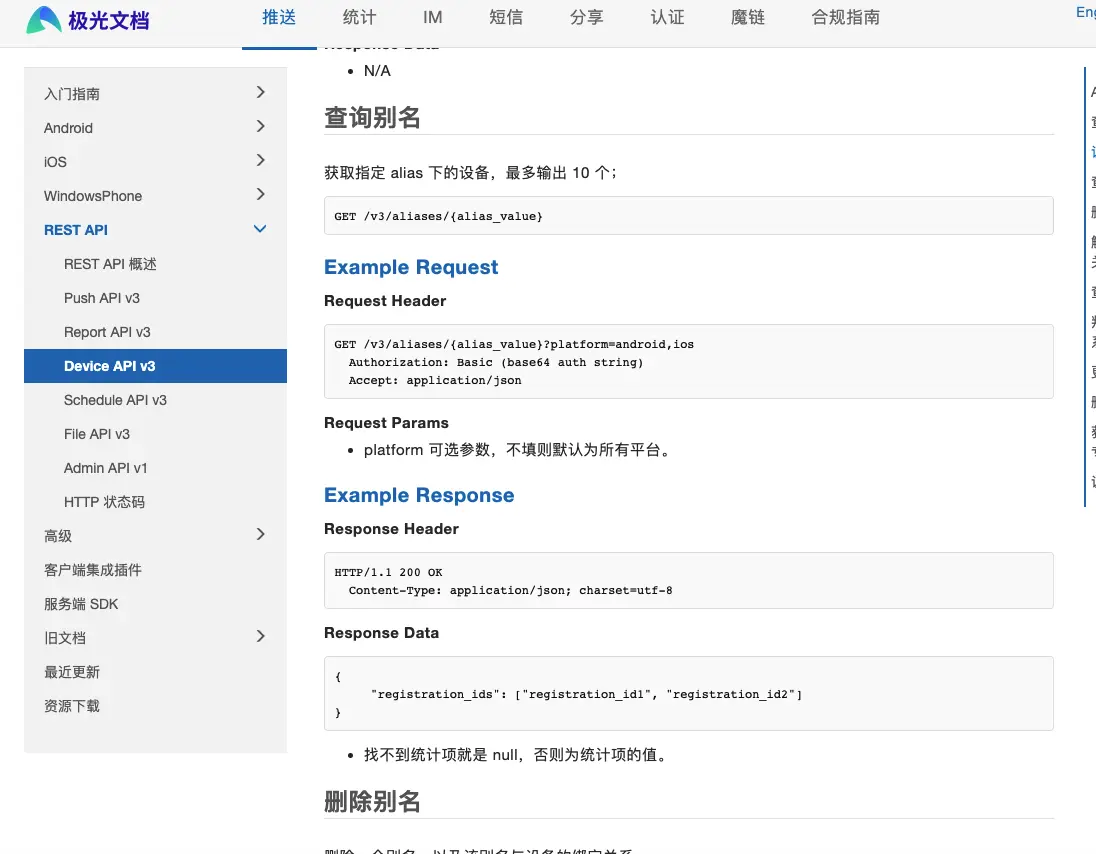 deviceToken传到后台之后,他们可以做的操作就比较多了,REST API可供调用的接口比我们的sdk多得多,他们可以查询别名,然后解绑设备,主要是操作的时机,后端可以在我们登录成功之后,检查别名绑定的设备数量,超过10个,采取解绑操作,然后再添加设备。当然后续可能采用Tags方式推送啥的,后端可以自由选择。