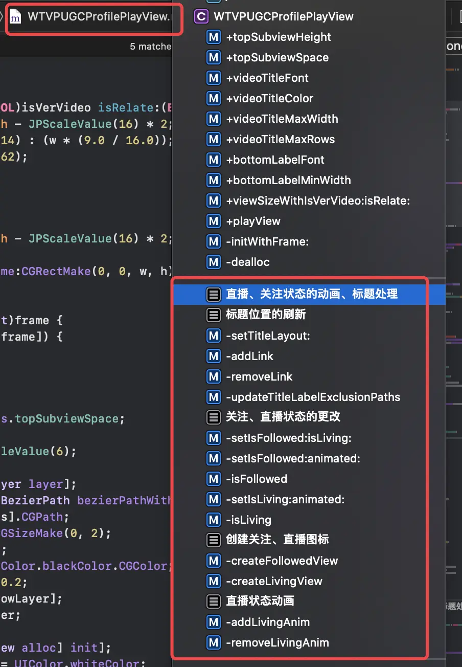 2. UI布局、动画代码都在WTVPUGCProfilePlayView.m里面实现: