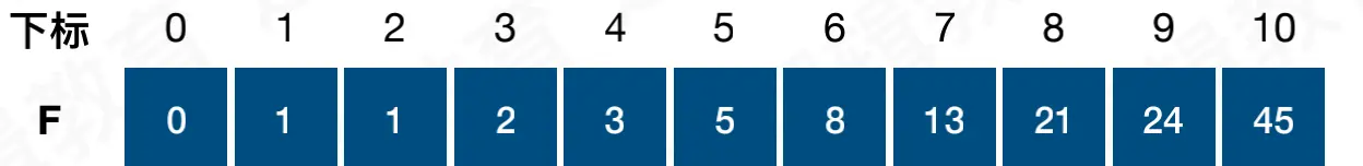 - 斐波拉契:一个有序递增数组中,从第三个数据开始,F[n] = F[n - 1] + F[n - 2],其中n>=3,