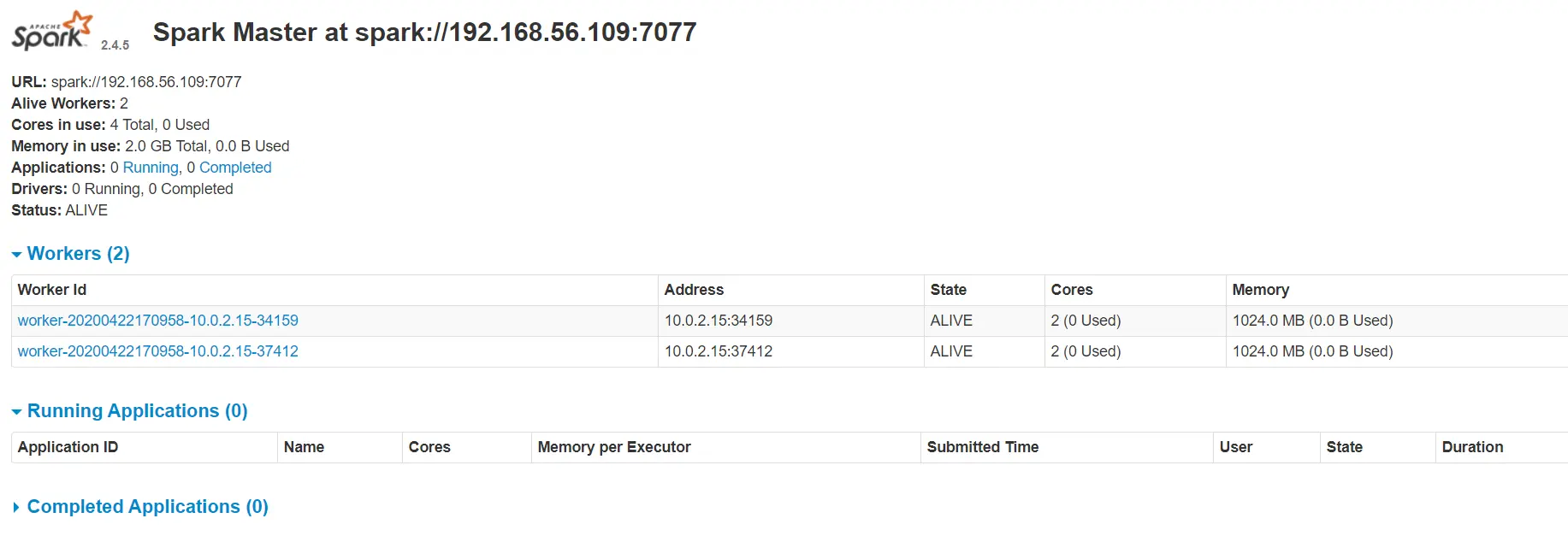 如果启动成功访问:http://192.168.56.109:8080/,会出现两个worker