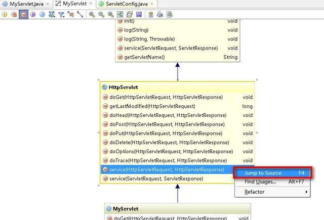 然后你就会得到如下图所示的继承关系图形,以自定义的Servlet为例: