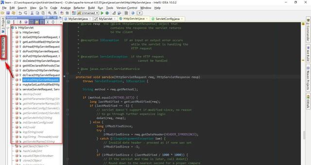 在进入某个类后,如果还想快速地查看该类的其他方法,还可以利用IDEA提供的structure功能: