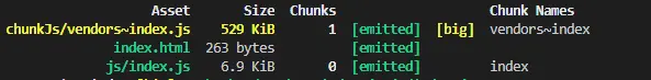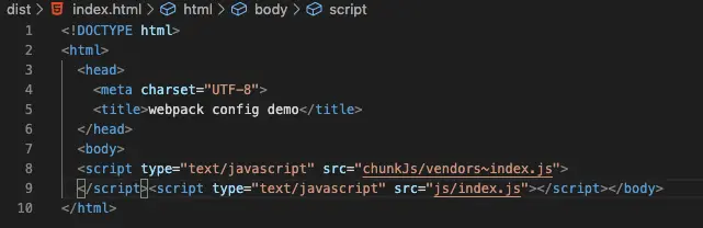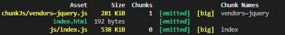 由于maxAsyncRequests设置为2,即index.html中,最多可以有2个script标签,所以jquery也被单独打包到wendors~index.js中了。