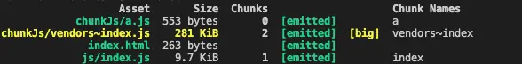 node_modules的模块,或被引用两次及以上的模块,才会做代码分割; - 被分割的模块必须大于30kb(代码压缩前);