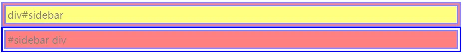 #sidebar div:是选择id为sidebar的子孙中的div元素,注意是子孙哦!它本身的这个sidebar元素是不会被选择的。