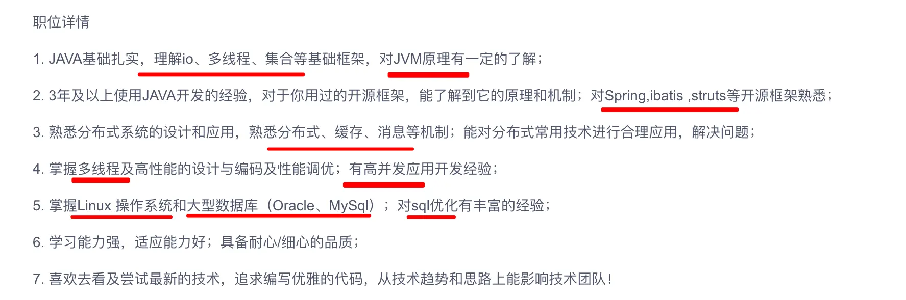 首先,我们需要知道要准备哪些技术板块。这个我们可以通过对应的JD去寻找,看看预期的岗位的JD是怎么写的,就能大概知道需要准备哪些技术板块。已1~3年开发经验的Java岗为例: